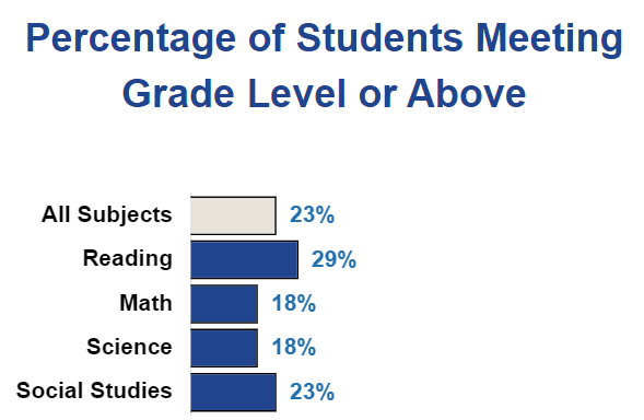 Based on 2022 STAAR test results, only 23% of Edgewood ISD students can read, write, and do math at or above grade level. The statewide average—which is also shockingly low—is 48%.