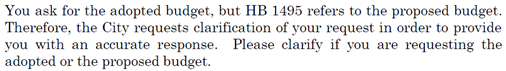 Shortly thereafter, the city responded with a request for clarification that read in part:
